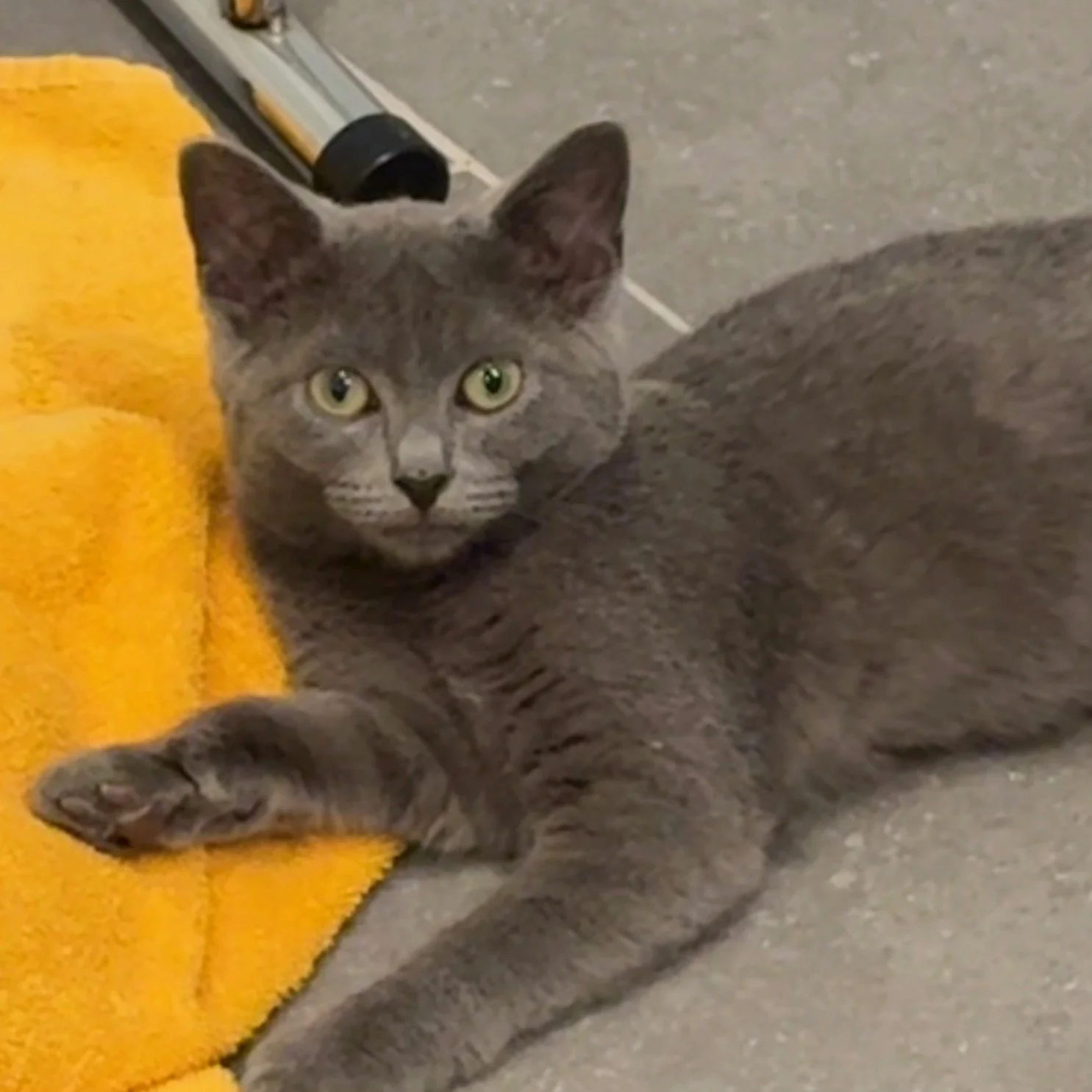 About me: Stone is a sleek, all-gray domestic shorthair with a quiet charm that reveals itself when the spotlight fades. She’s most playful when the room settles down and no one’s watching—darting after toys with stealth and grace. Though she thrives in peaceful moments, Stone has been raised in a lively foster home with five feline siblings and two energetic kids, and she’s handled the chaos like a pro.